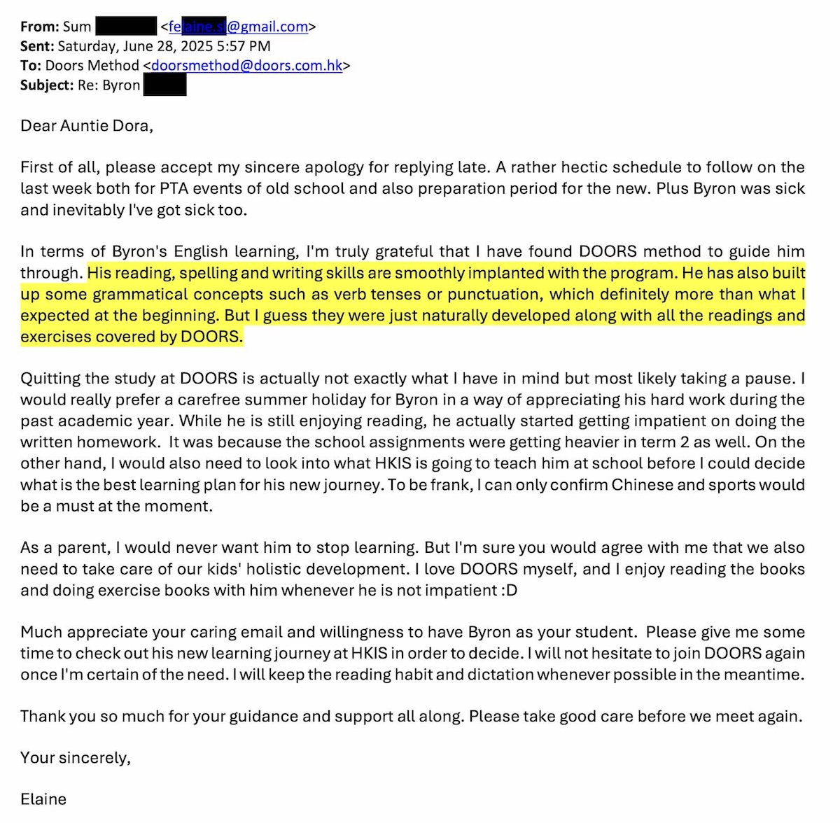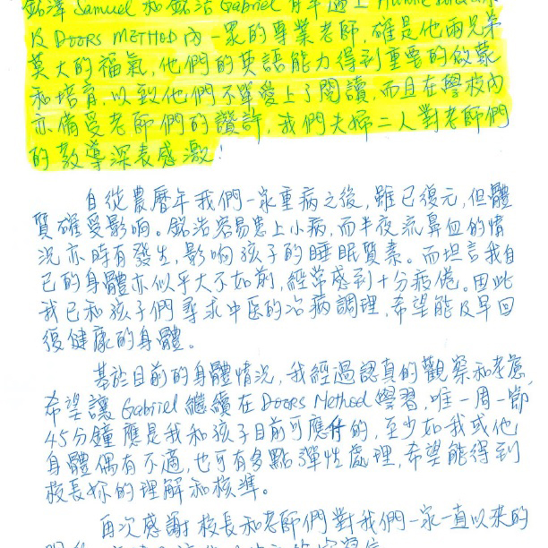 Parents’ Appreciation Letters and Written Notice for students' withdrawals